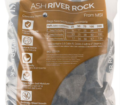 Ash Beach Pebbles feature polished black and deep gray tones and all the character of natural beach pebbles. These fine polished quartzite rocks suit a variety of landscaping projects. Use to create wandering paths, keep weeds at bay around trees, or accent landscape features, including fountains and water features.